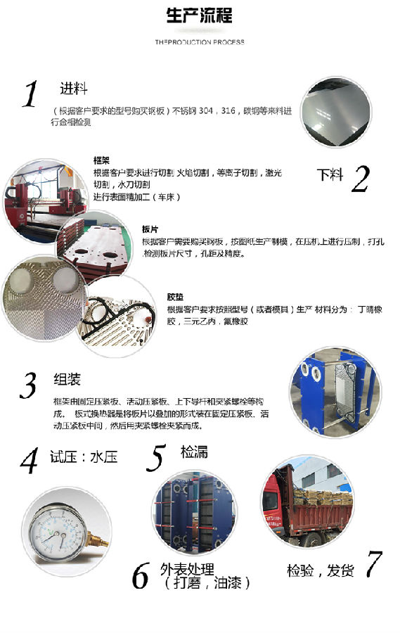 板式換熱器是由一系列具有一定波紋形狀的金屬片疊裝而成的一種新型高效換熱器。各種板片之間形成薄矩形通道,通過(guò)板片進(jìn)行熱量交換。板式換熱器是液—液、液—汽進(jìn)行熱交換的理想設(shè)備。它具有換熱效率高、熱損失小、結(jié)構(gòu)緊湊輕巧、占地面積小、安裝清洗方便、應(yīng)用廣泛、使用壽命長(zhǎng)等特點(diǎn)。在相同壓力損失情況下,占地面積為管式換熱器的三分之一,熱回收率可高達(dá)90%以上。